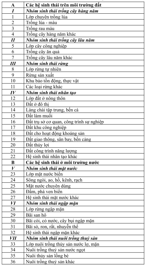 Dựa vào đặc điểm khu vực triển khai, có thể lược bỏ hoặc bổ sung thêm số nhóm và số lớp sinh thái của các nội dung trên.